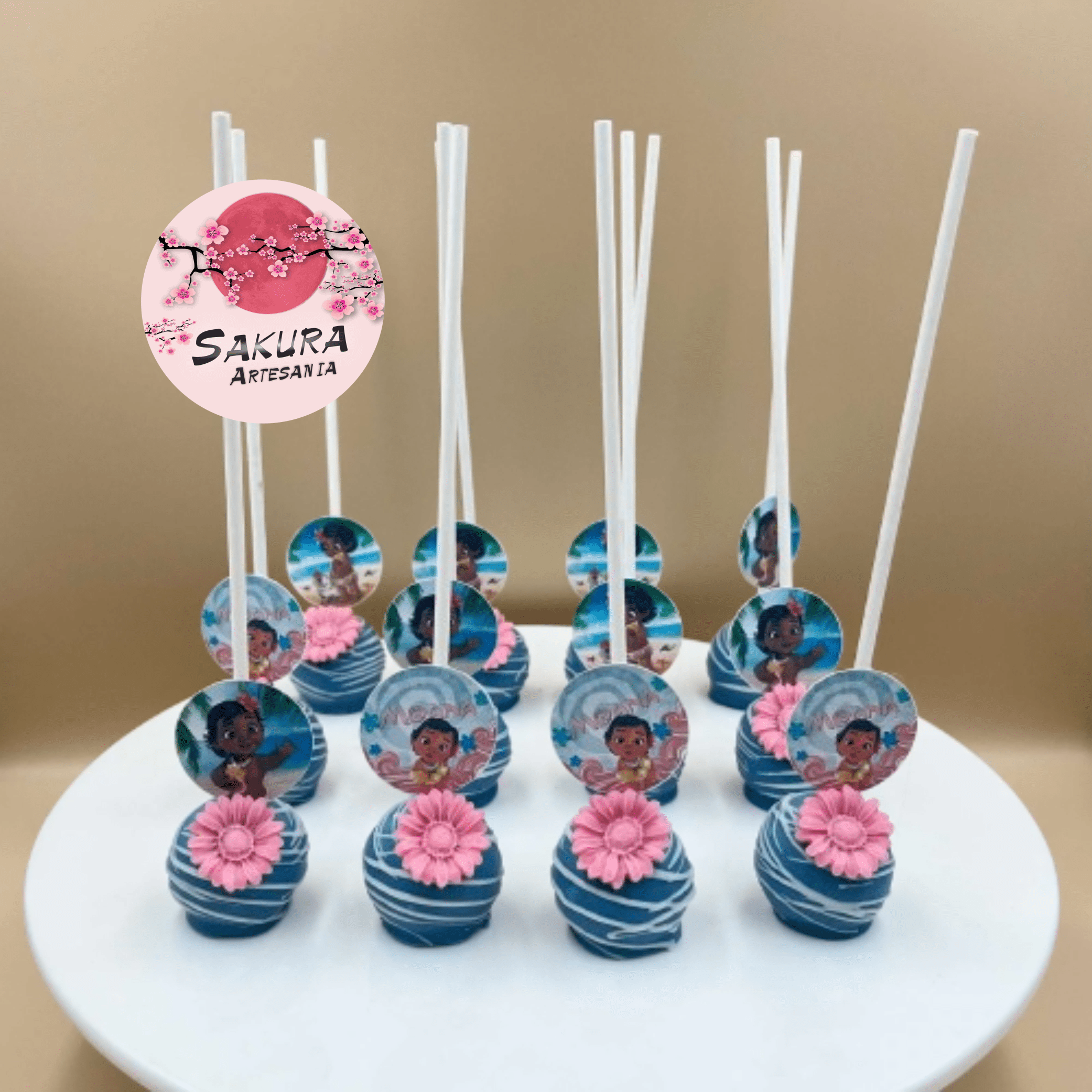 Nuestros cake pops temáticos sumergidos en delicioso chocolate y decorados a mano son un regalo perfecto para fiestas y eventos temáticos, presentados en una base de Telgopor forrada. ¿No ve lo que busca? Háganos saberlo para que podamos crearlo para usted. Nuestros cake pop tienen una combinación secreta de ingredientes para hacerlos increíblemente deliciosos. 2 onzas. de bizcocho horneado húmedo se mezcla con la cantidad justa de dulce de leche estilo trufas hecho en paletas del tamaño de un bocado; bañado en chocolate blanco o con leche, luego adornado con hermosos diseños. El cake pop de SAKURA ARTESANIA está decorado a mano artesanalmente y con amor.